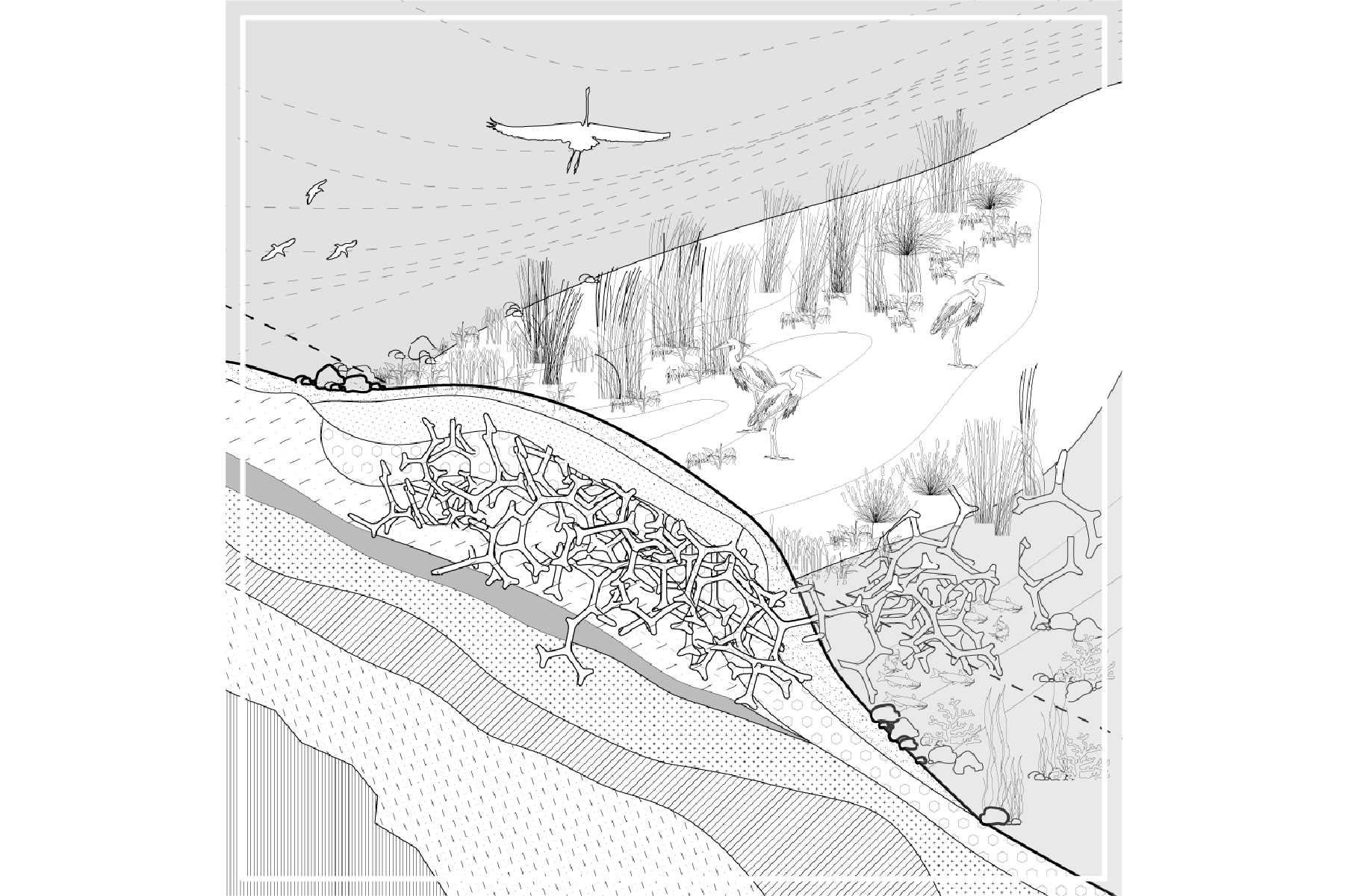 This proposal looks at the wider context beyond the human through the creation of non-human habitats. The potential short-term disruption caused by this intervention is an essential step for the healing process to take place. The rebirth of this neglected landscape represents the reclamation of a broken habitat.