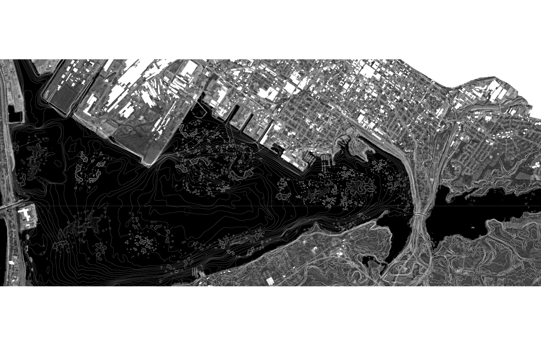[ Island-Hop ] envisions a new future for Hamilton Harbour in which a series of artificial islands populating the harbour accelerate the ongoing remediation process. Each island aggregation has a distinct typology which in turn fulfills a unique role in the harbour. The proposal consists of multiple phases, starting with the creation of barrier islands for containment of sediment contaminated by hydrocarbons, moving to marshes to expand the local ecologies, and concluding with archipelagos that host new spawning grounds over time. All islands are ‘artificial’ and share the same basic construction. An interlocking 3D printed skeletal structure composed of modules of varying sizes form an artificial reef base. The base is topped with layers of ‘natural’ materials such as small rock, gravel, and soil to support growth of vegetation, which form a role in bioremediating water and soil.
